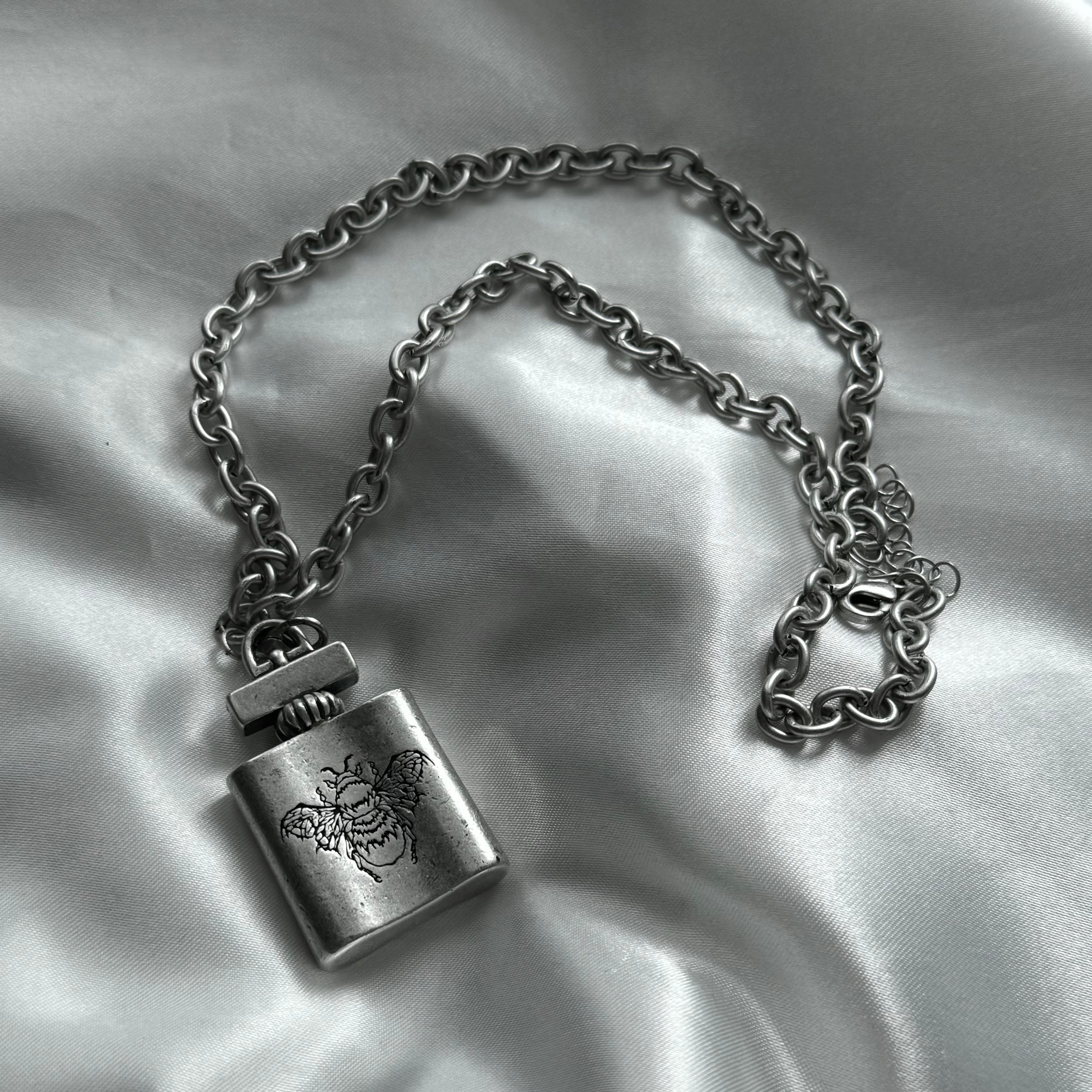 ウイスキーボトルをモチーフにしたデザインのネックレスとなっています。