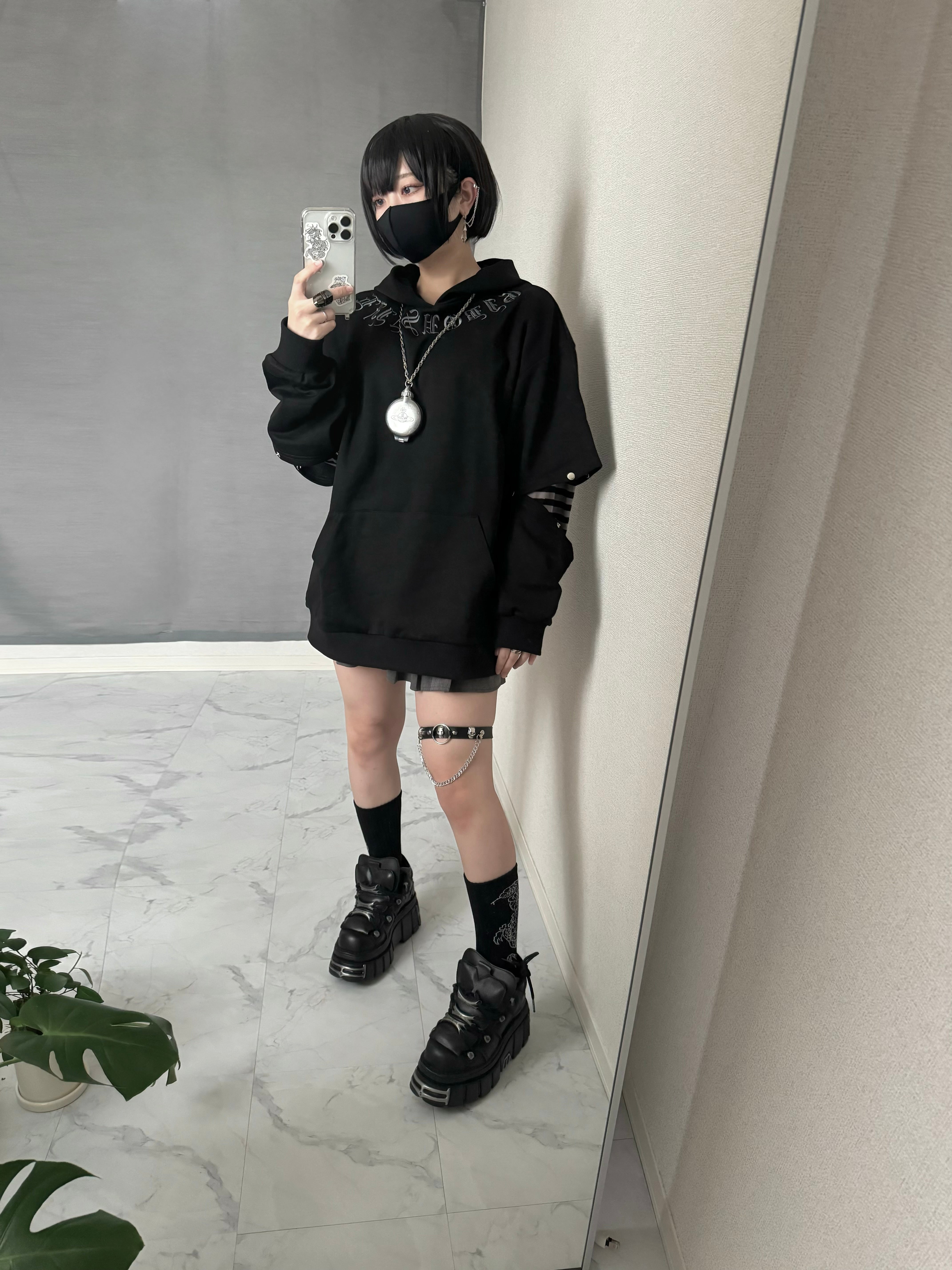 シースルートップスや柄物のアイテムと組み合わせるのもオススメです☑︎