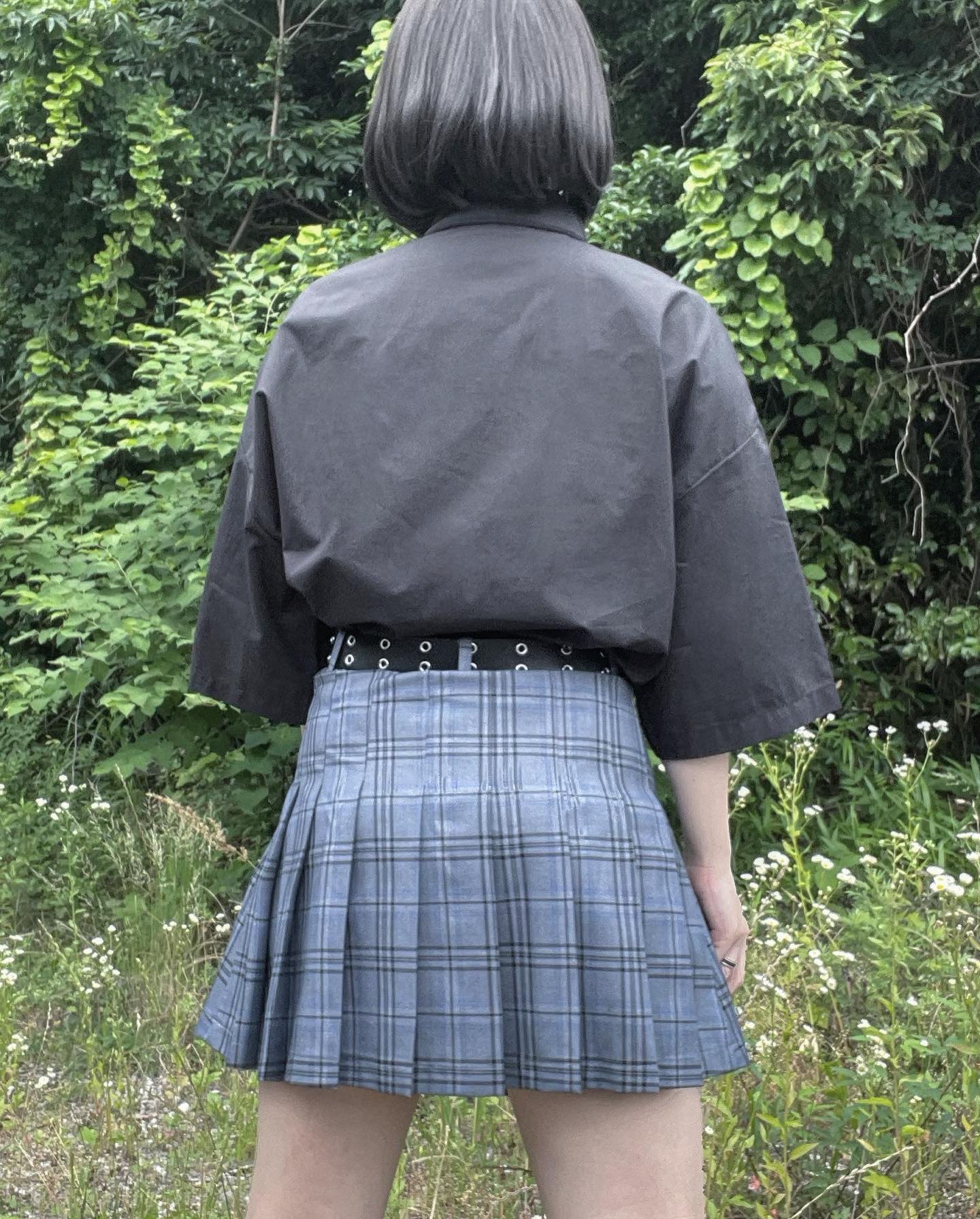 gibous check skirt gray