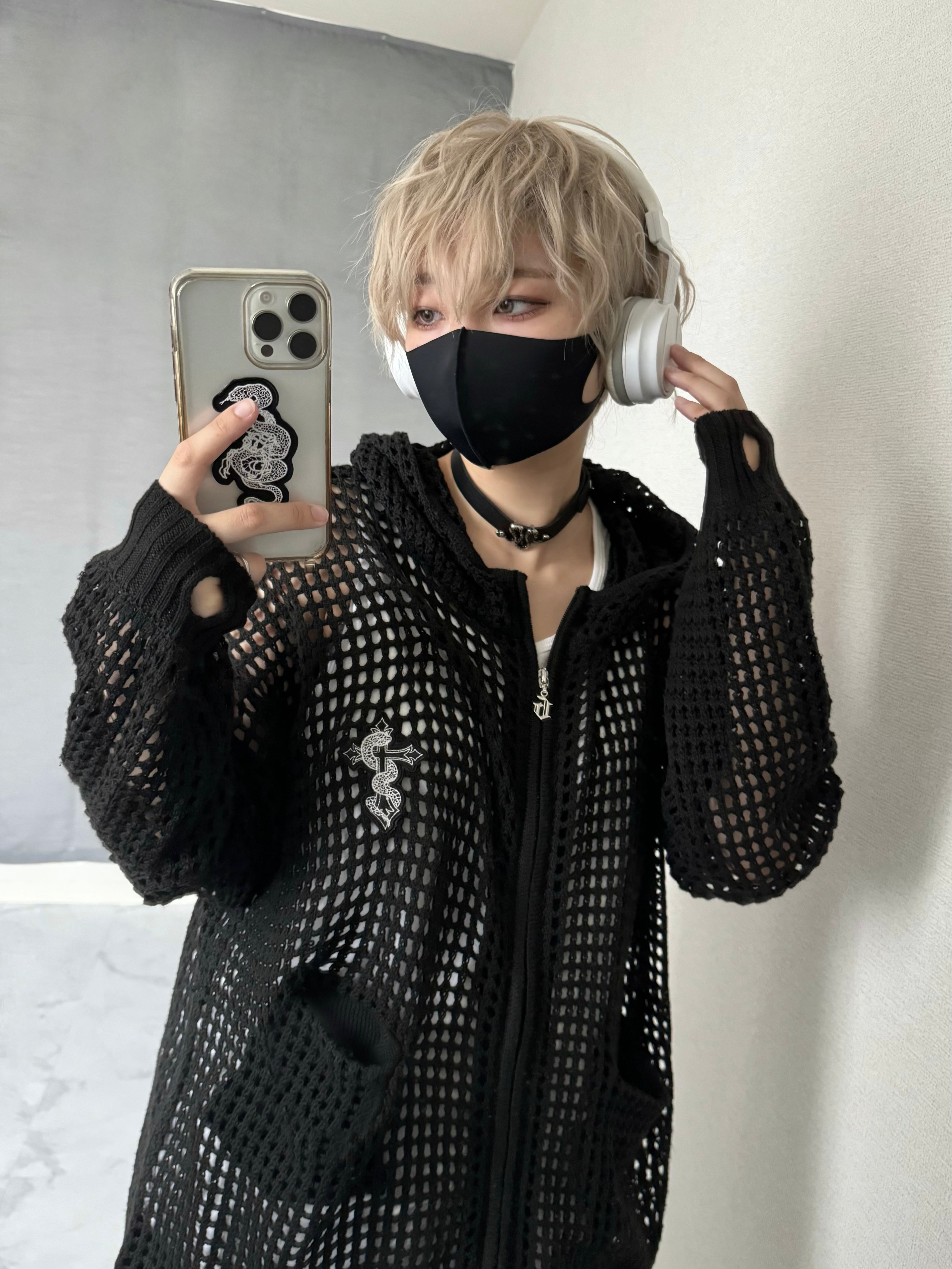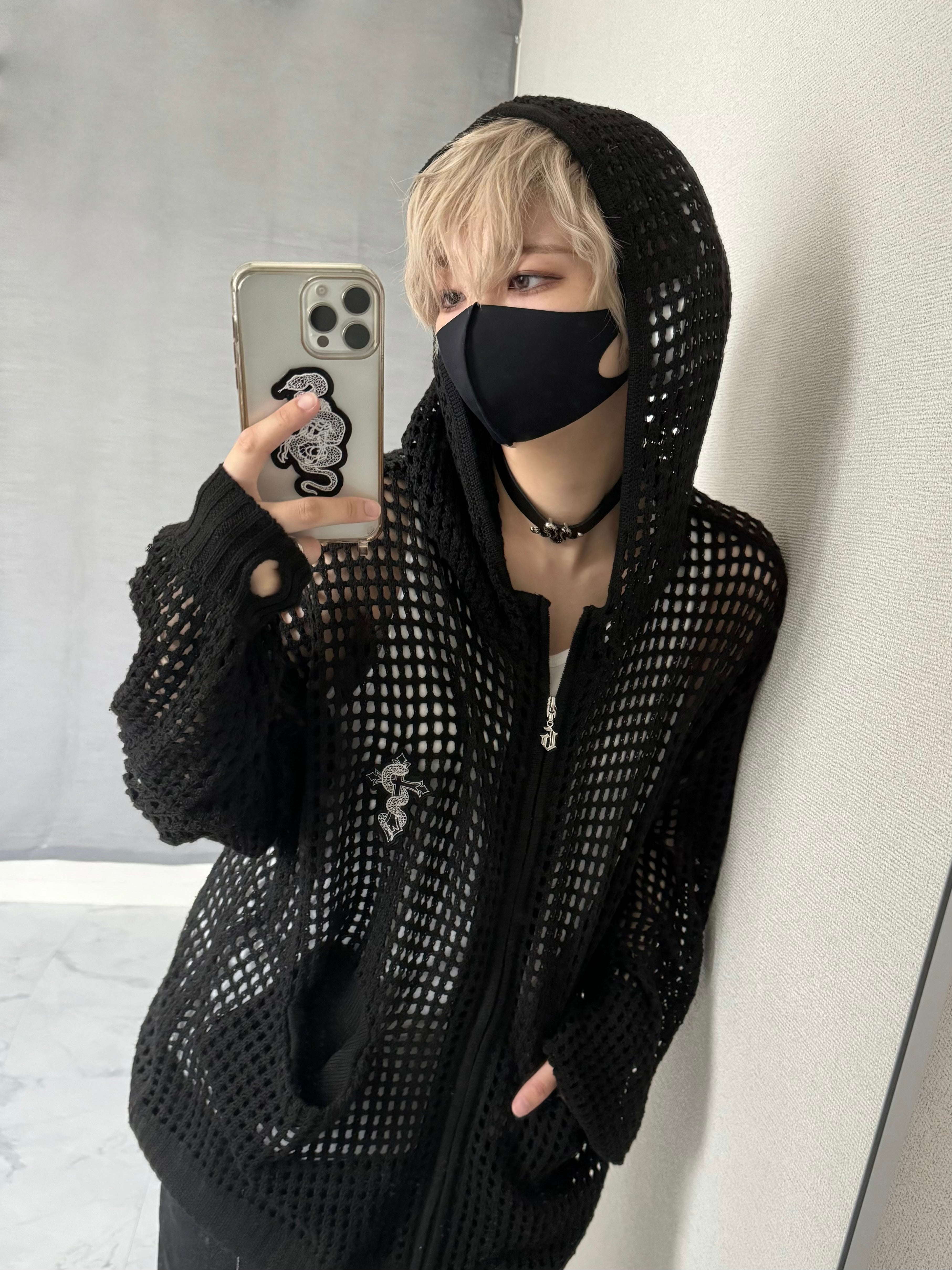 メッシュのデザインになっており通気性のあるパーカーになっております。