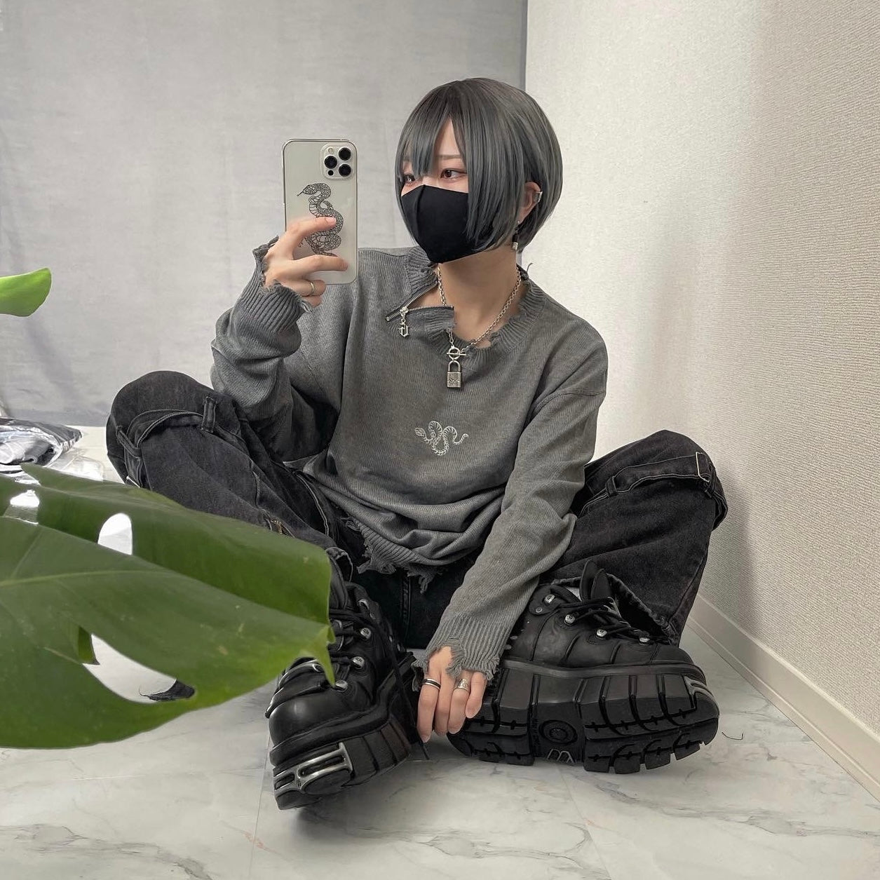 ダメージ感、首元のGチャック、フロント中央のワンポイントスネークと