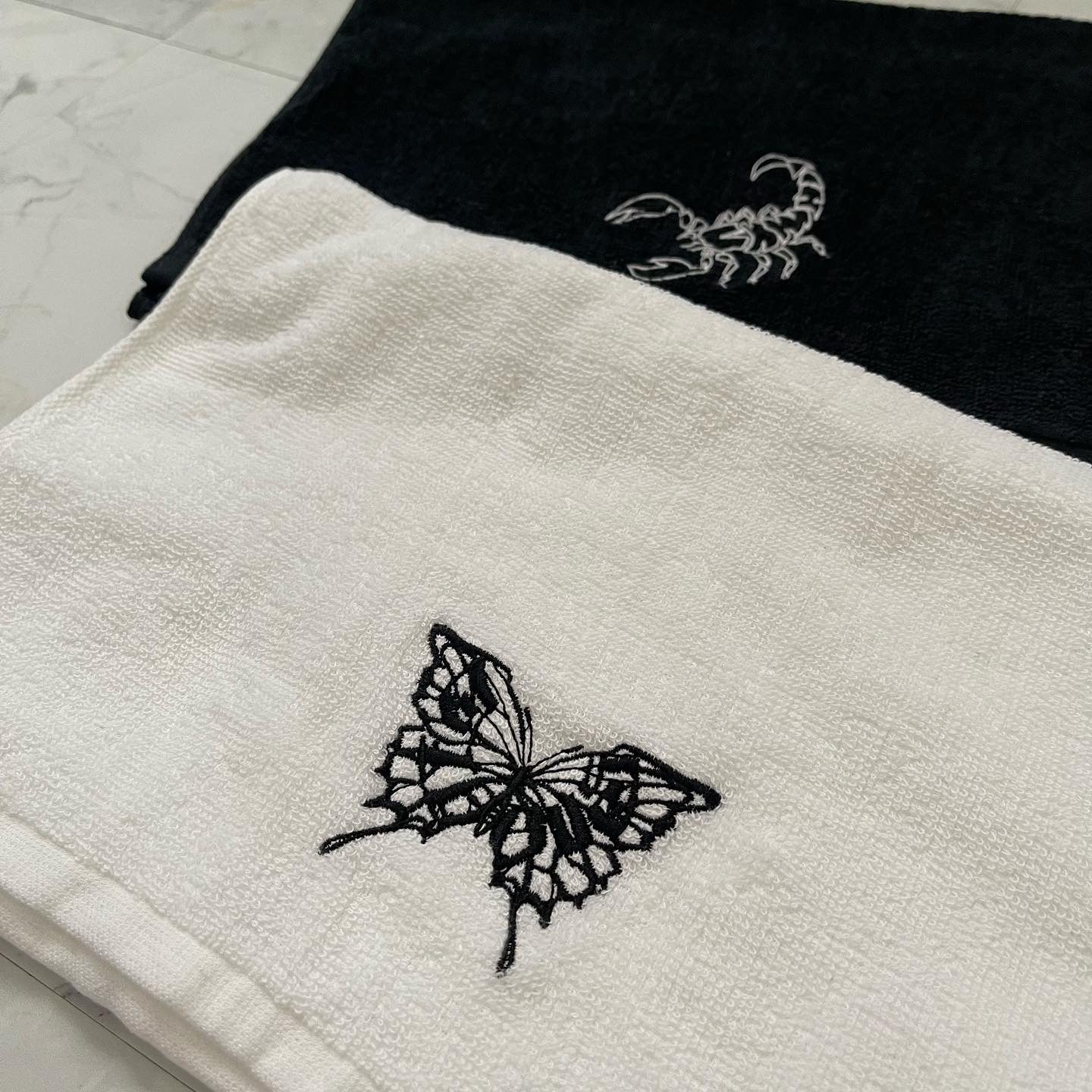 gibous face cotton towel butterfly logo white