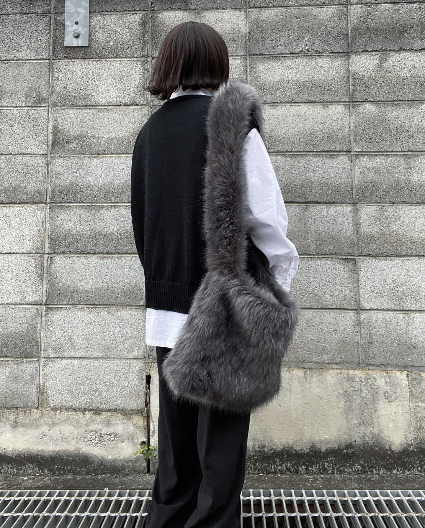 リアルファーに近い上品な光沢と非常に手触りの良いフェイクファーバッグとなっております。