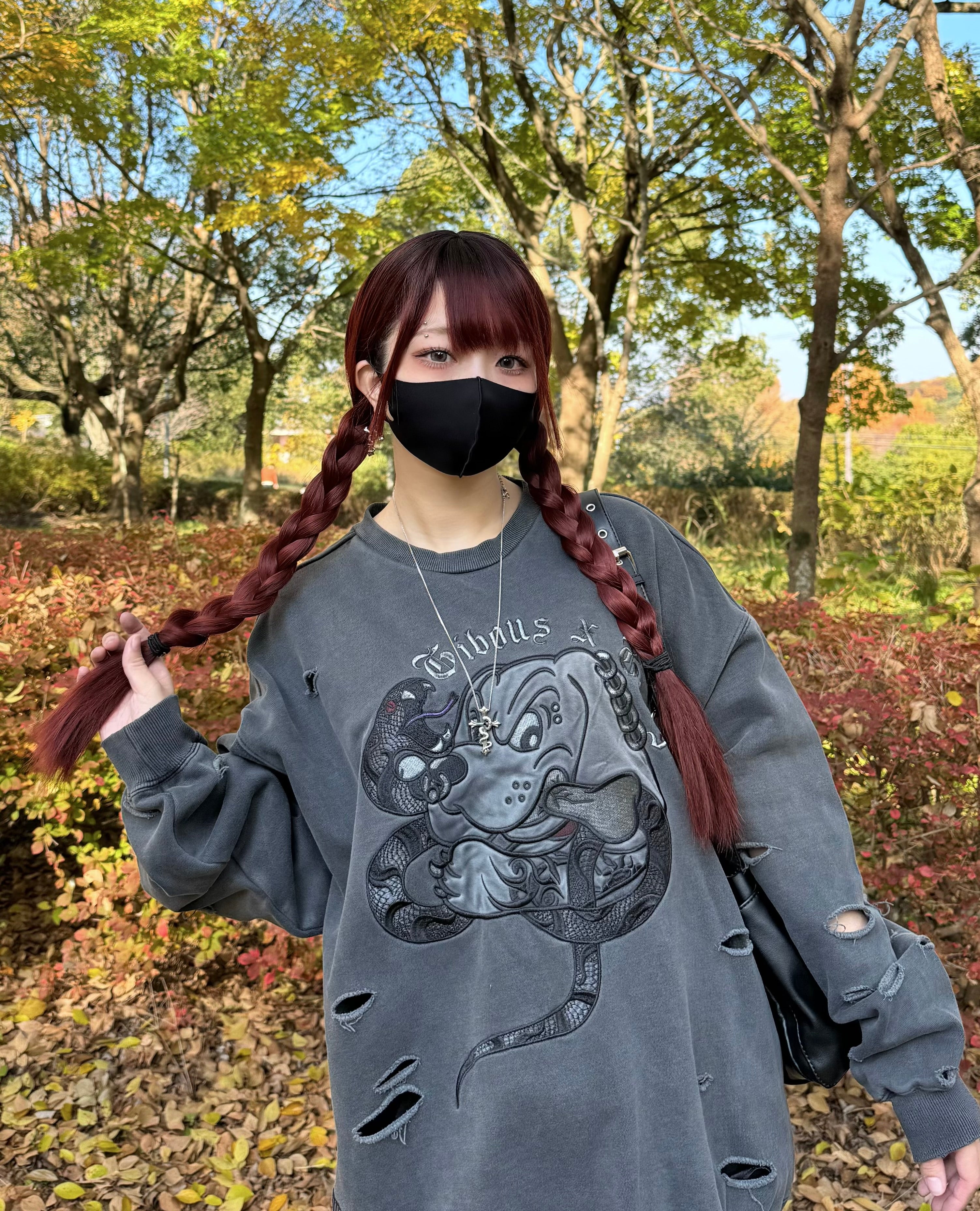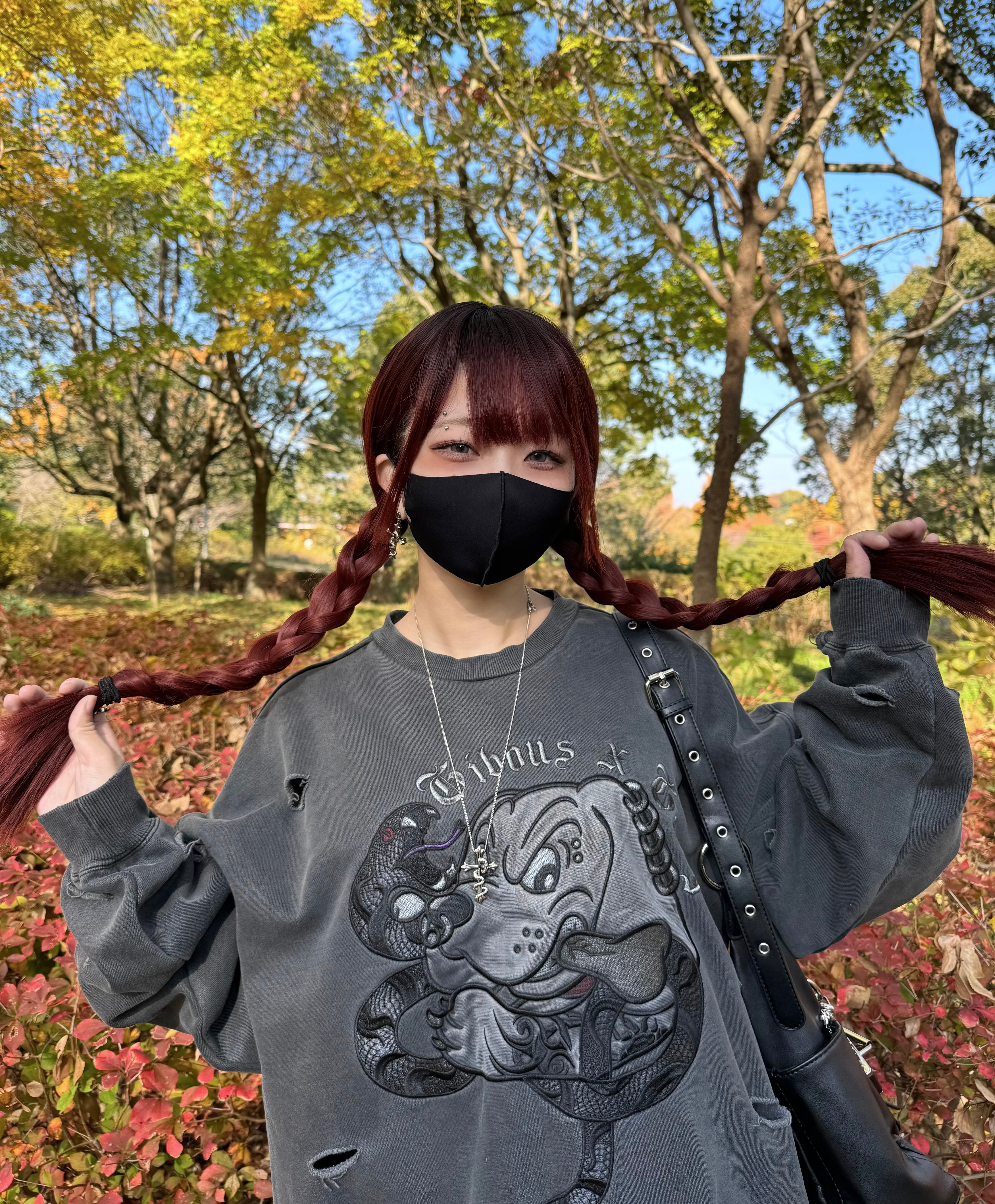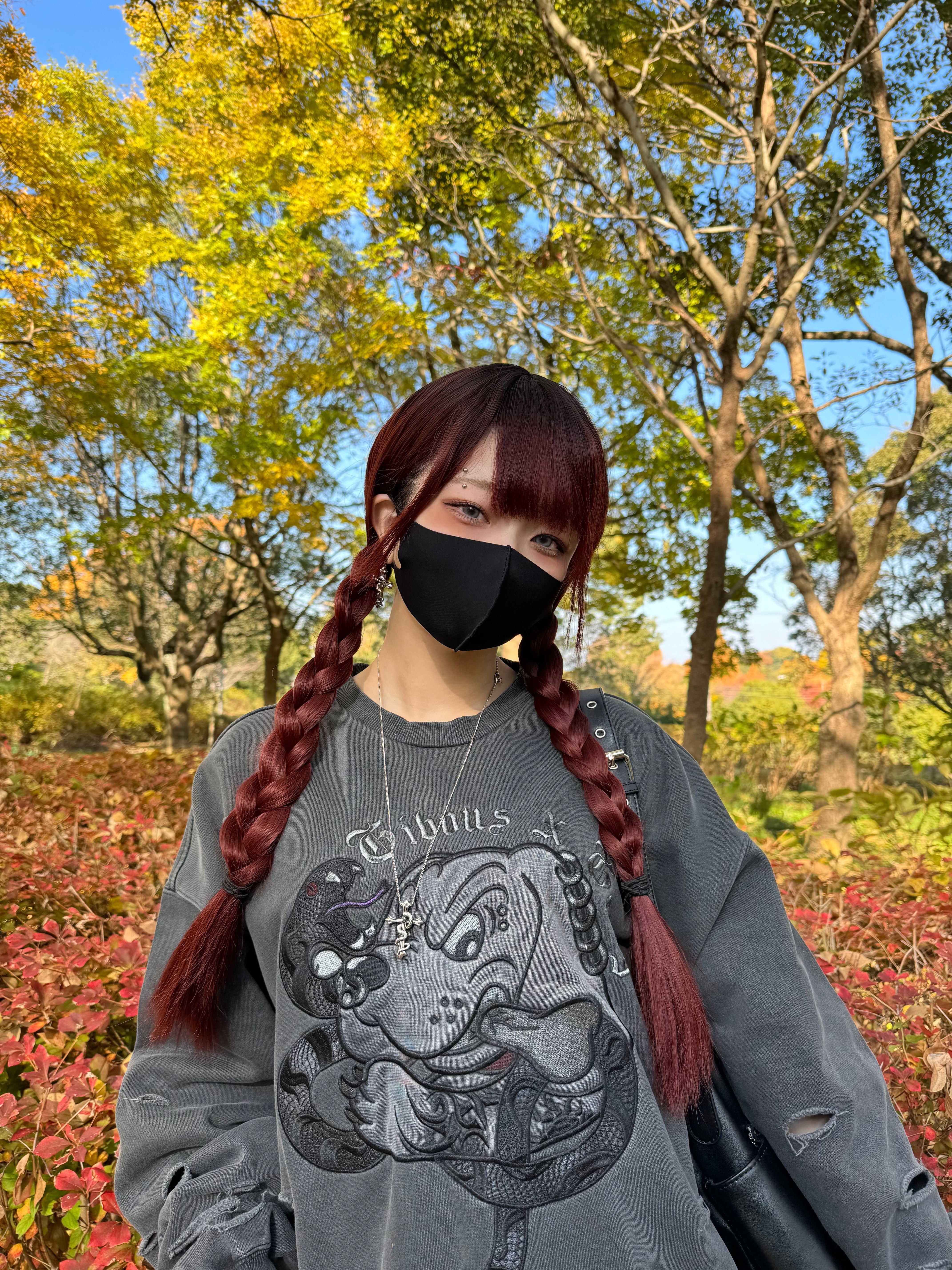 フロントにはコラボオリジナルのピアス沢山の蛇蠍ガルフィわんちゃんデザイン。
