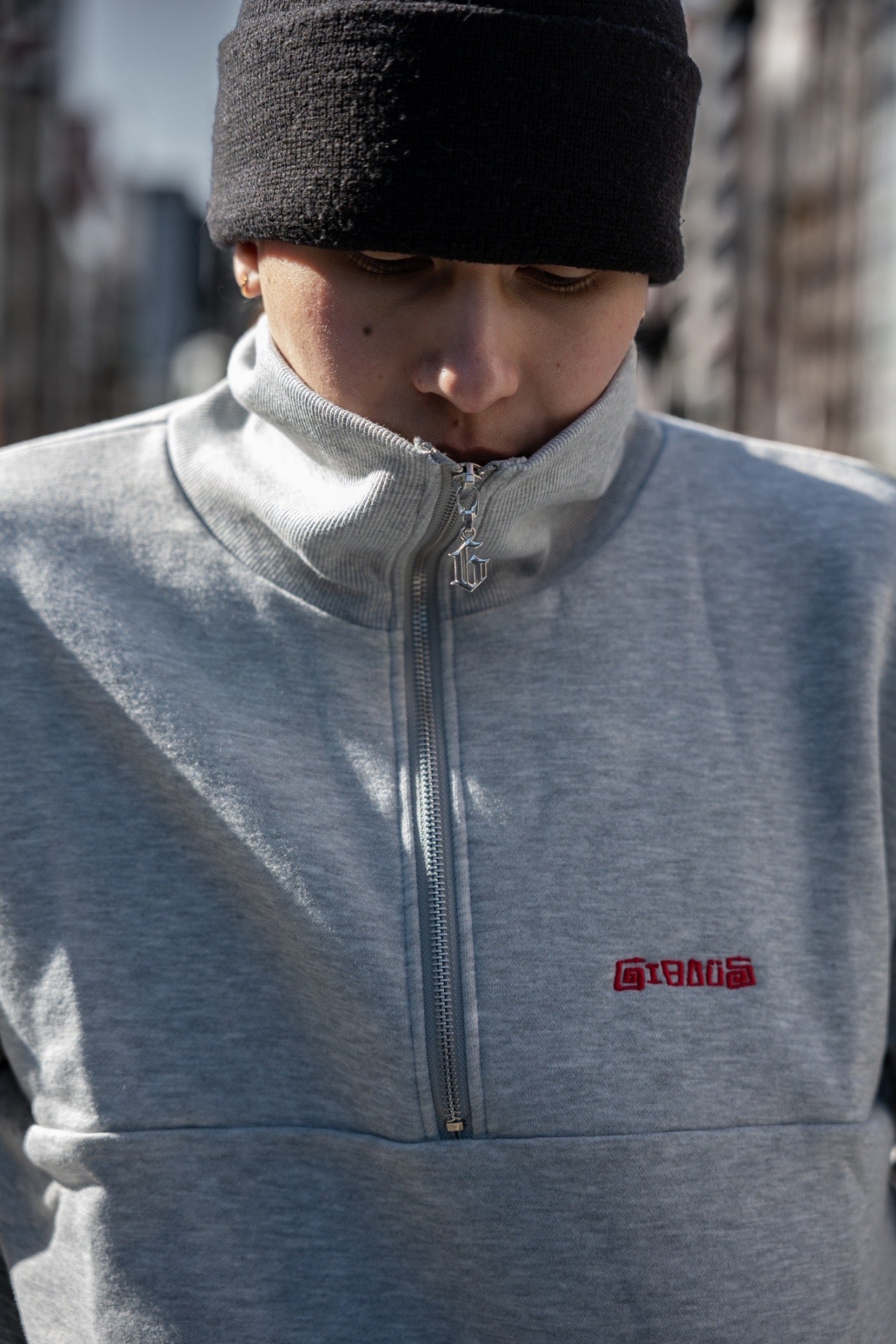 【再販】gibous logo snake half zip gray