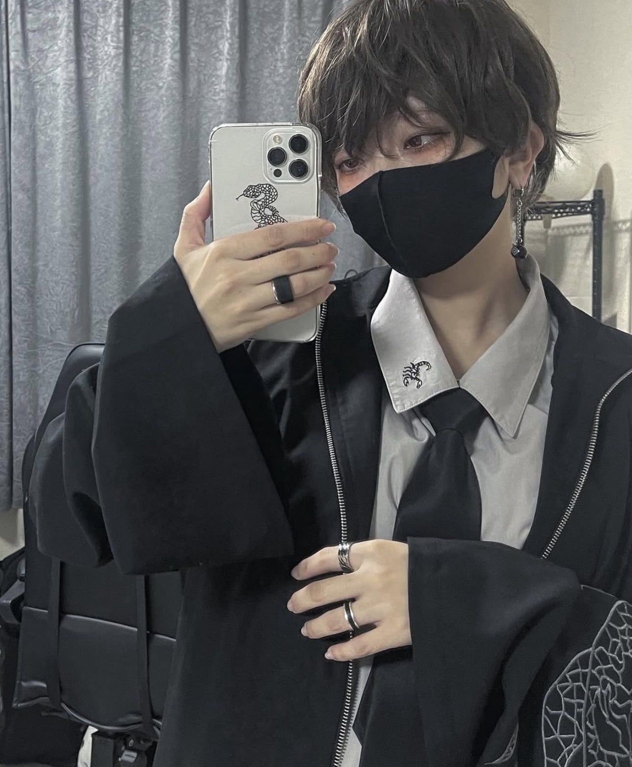 シンプルなデザインで襟部分にサソリ刺繍を施しております。
