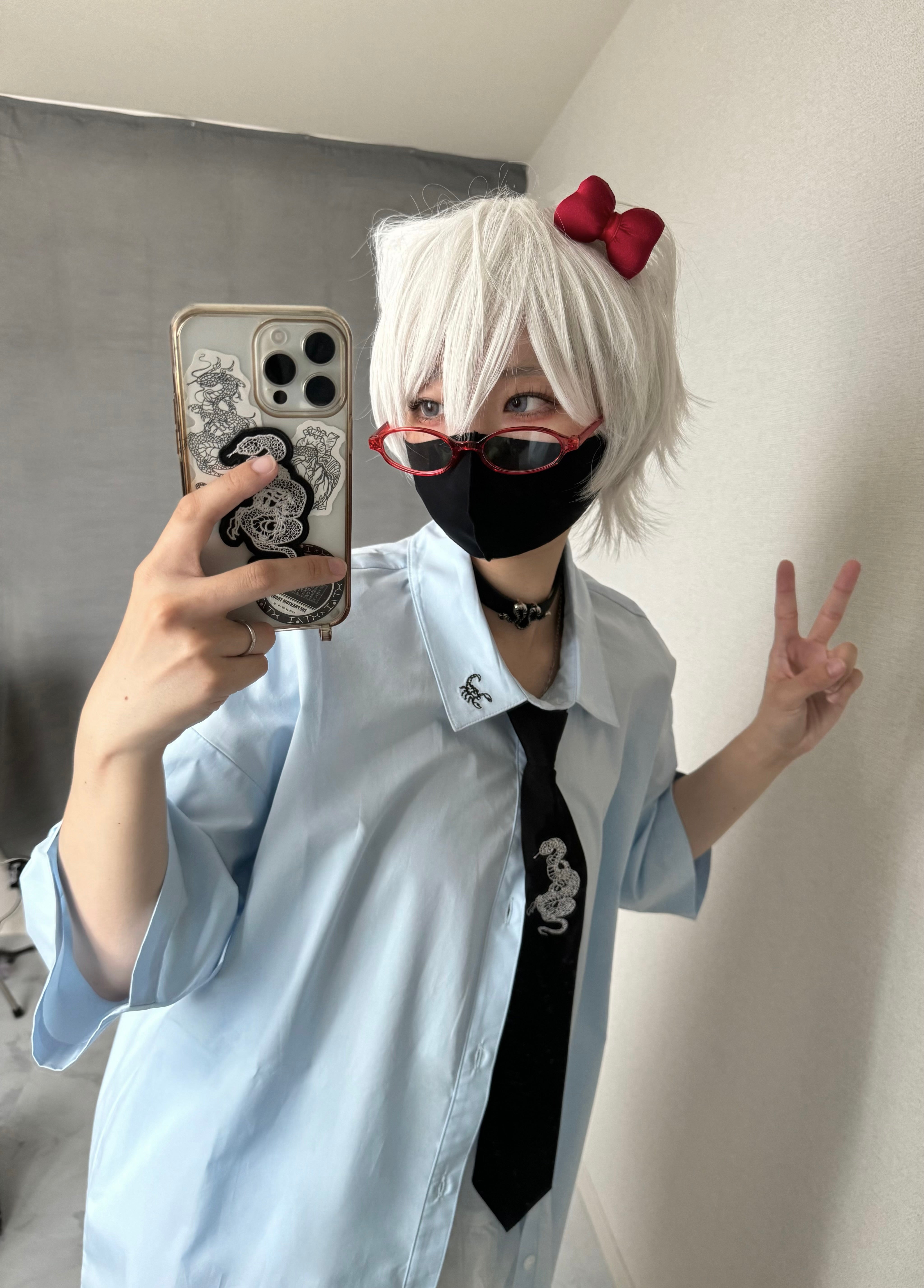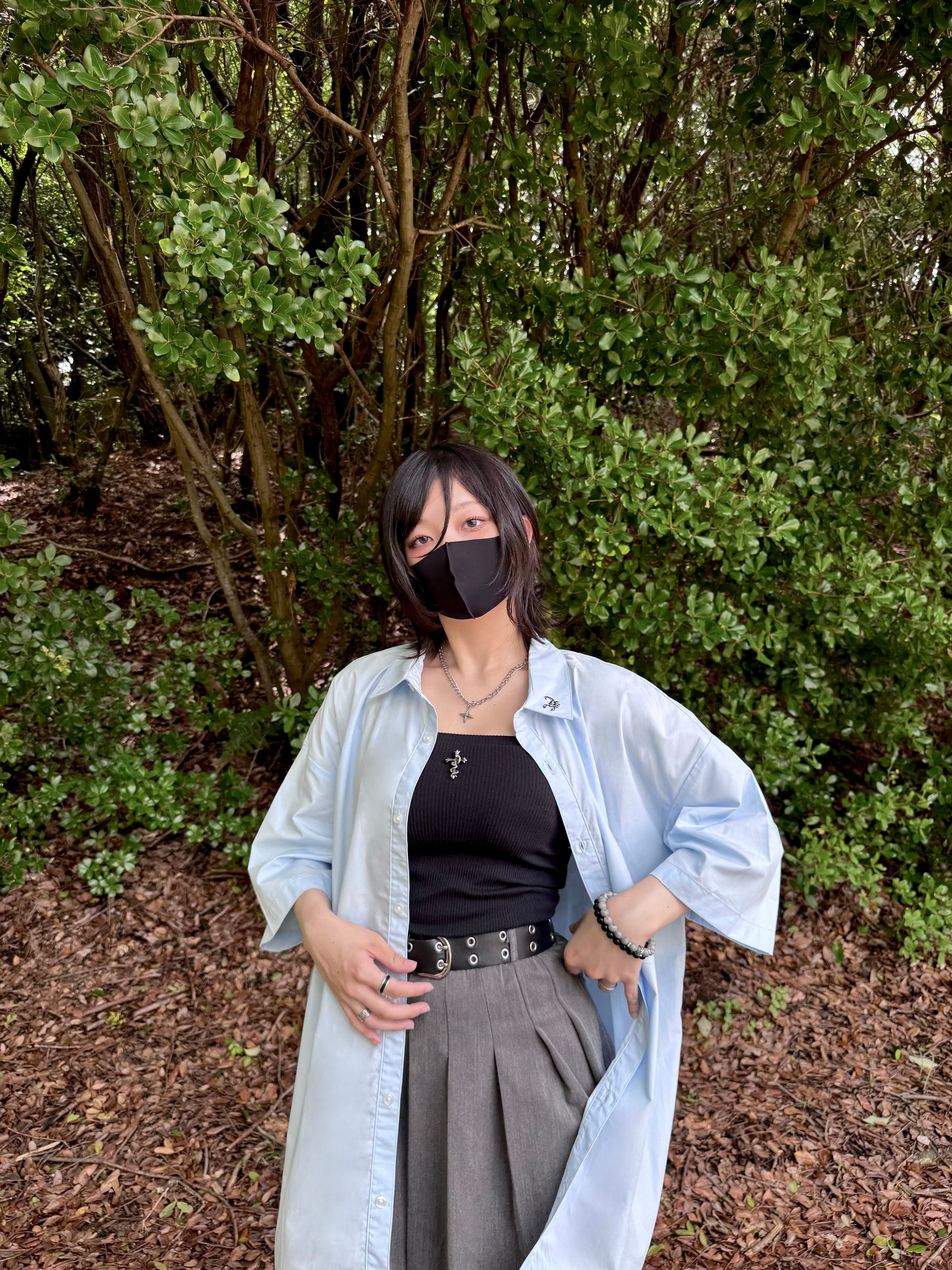 オススメのスタイリングは、ボタンを閉めてネクタイの着用や前開きでネックレスなどと合わせて着ていただくのがオススメです。