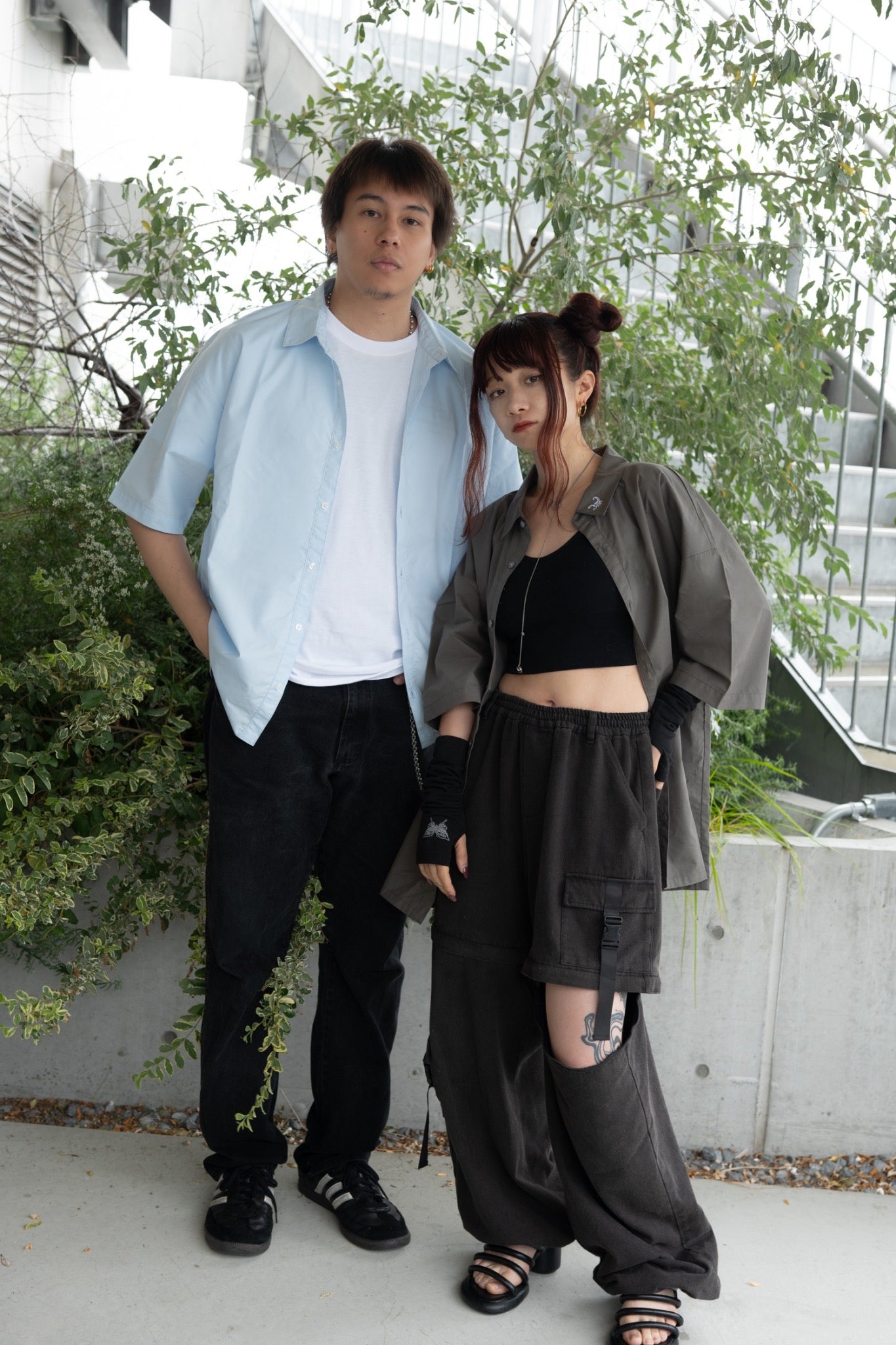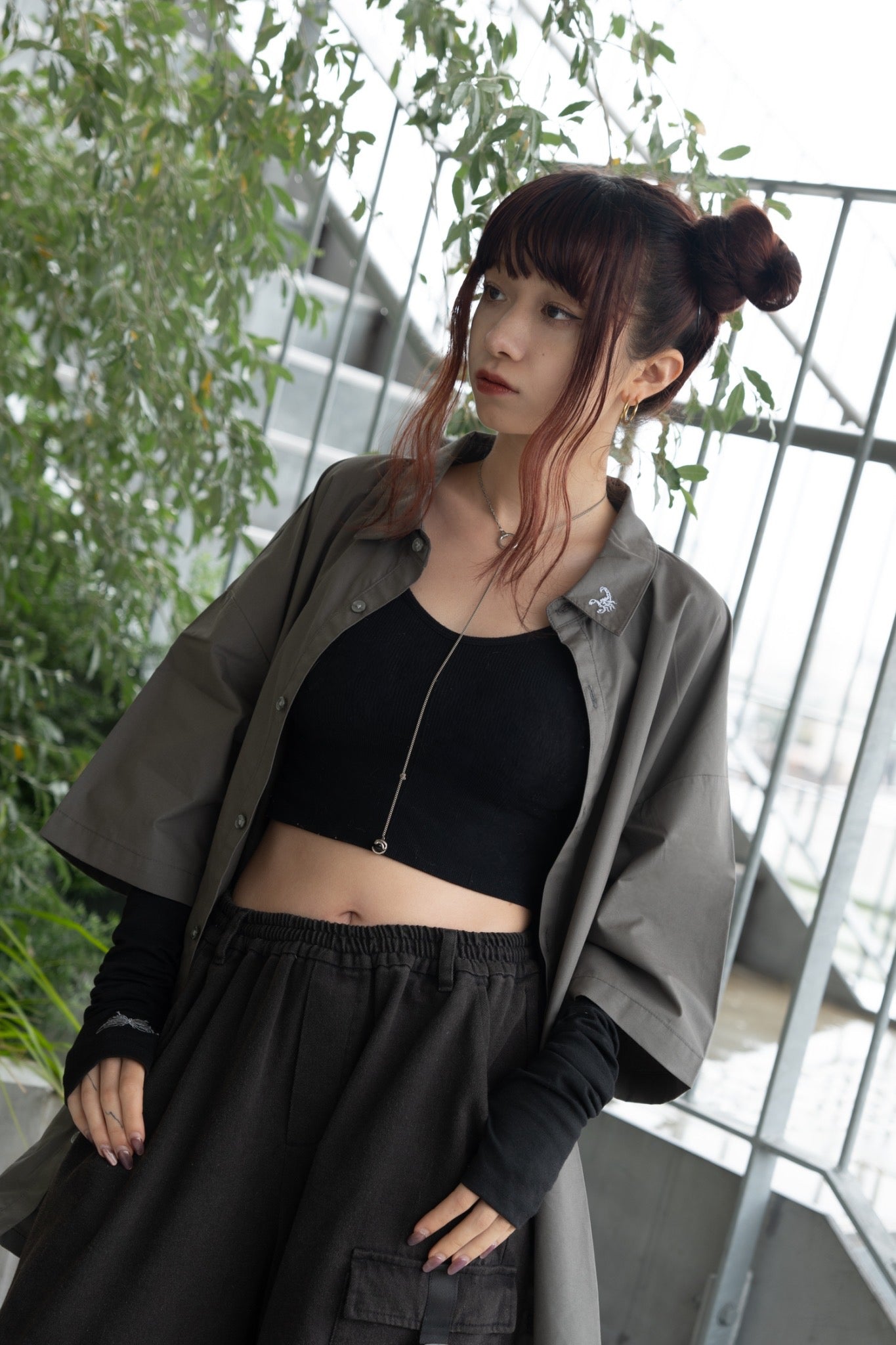 オススメのスタイリングは、ボタンを閉めてネクタイの着用や前開きでネックレスなどと合わせて着ていただくのがオススメです。