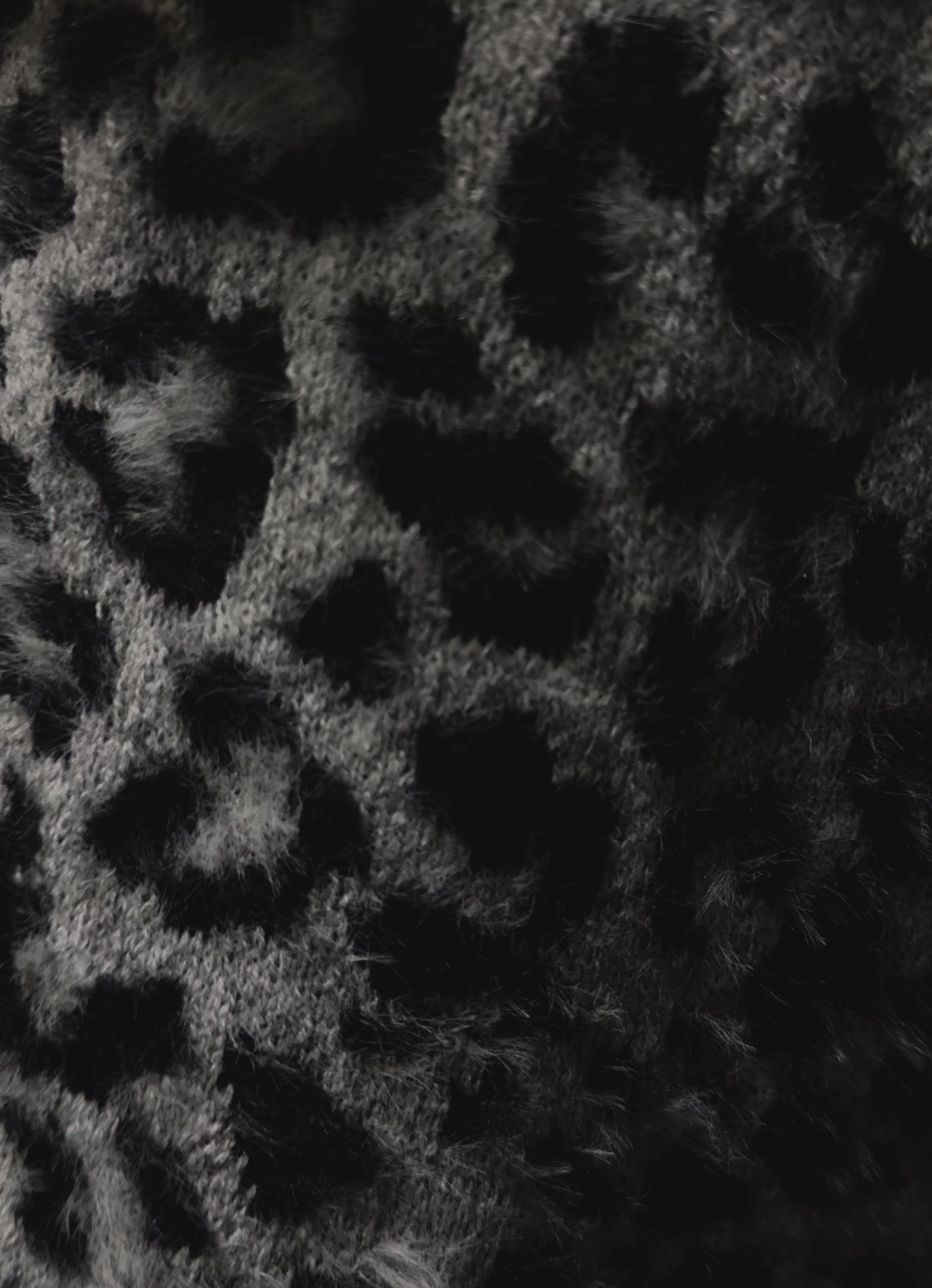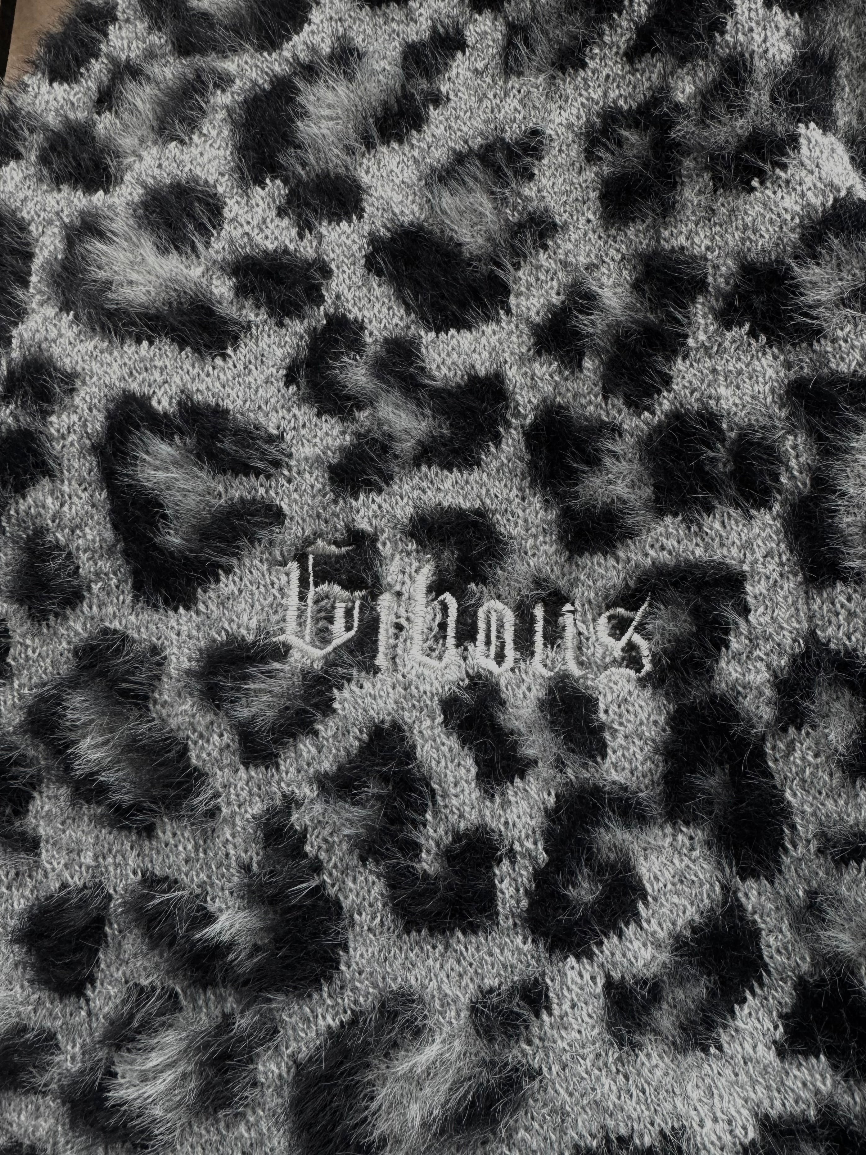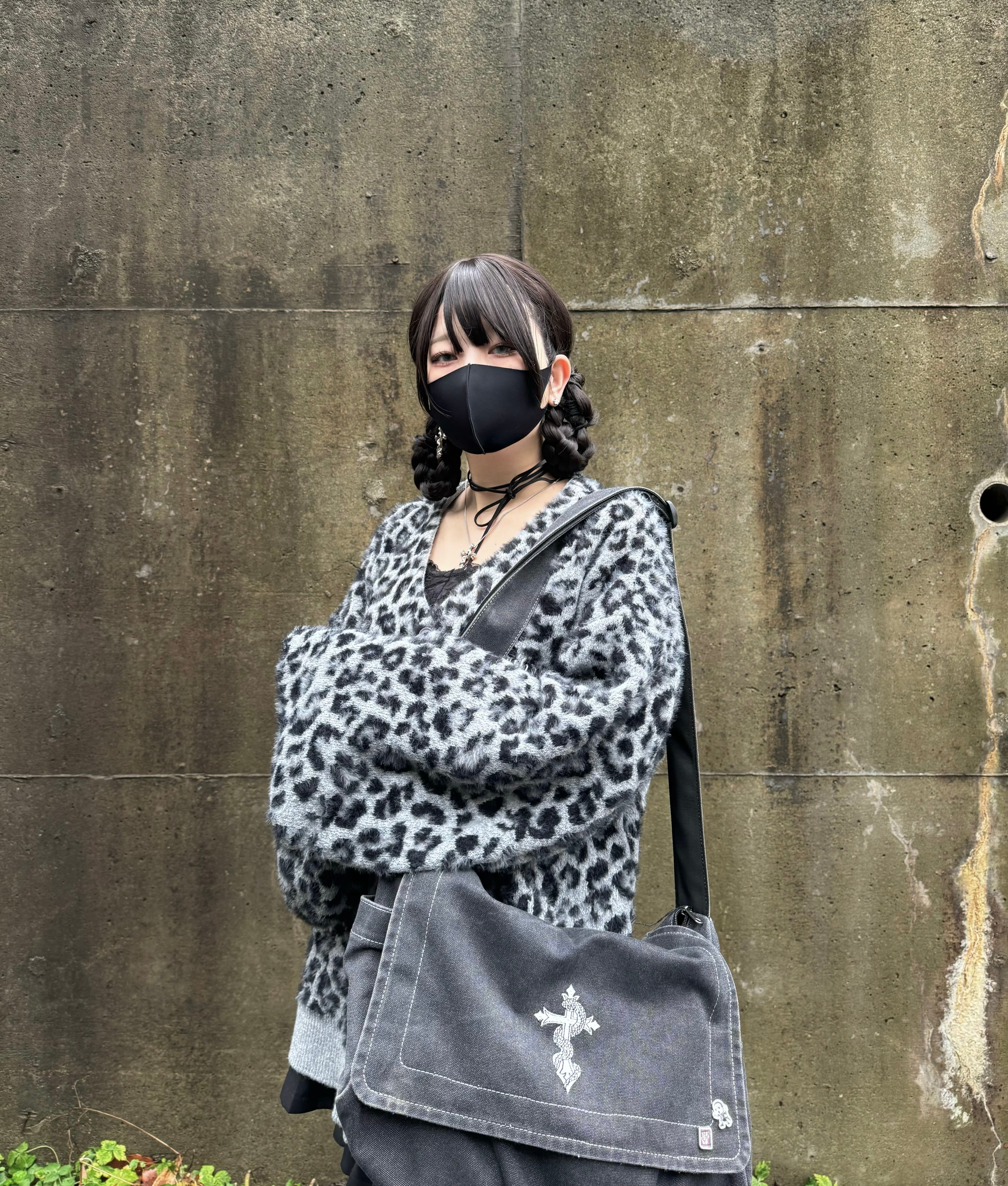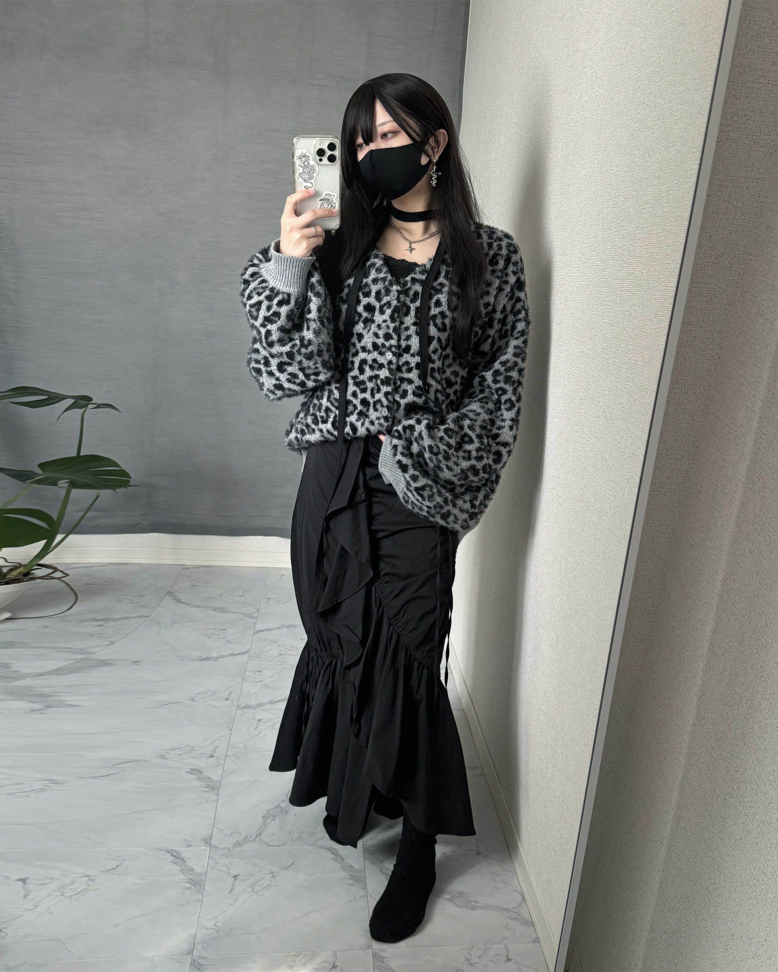 あまりない寒色のヒョウ柄の個性派カーディガンでコーディネートの主役になってくれるアイテムです。