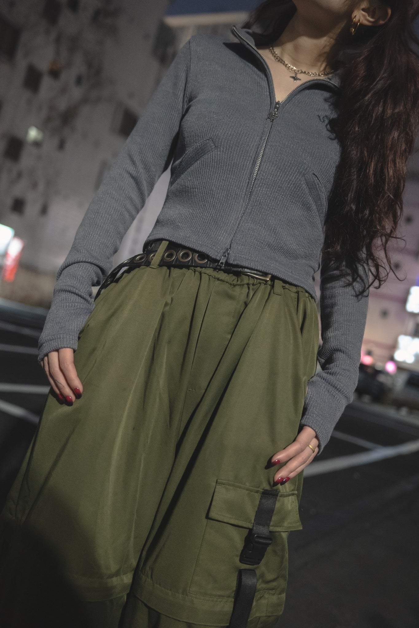 フルジップは上下開けれる仕様になっており、上だけ開けても上下開けても可愛くお好みで着こなし可能です◎