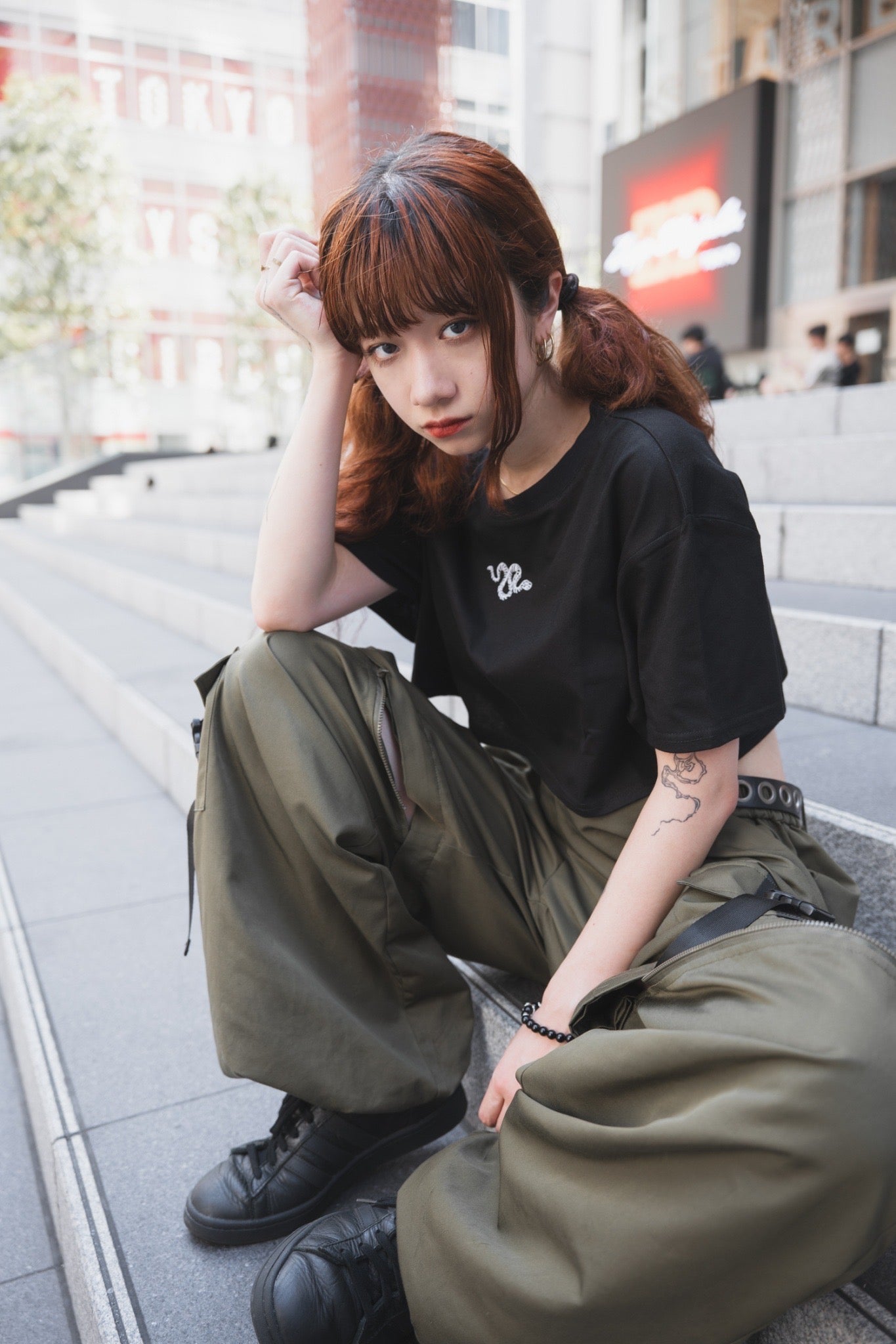 ショート丈Tシャツなのでダンスやスポーツなどアクティブなシーンにもおすすめのアイテム。