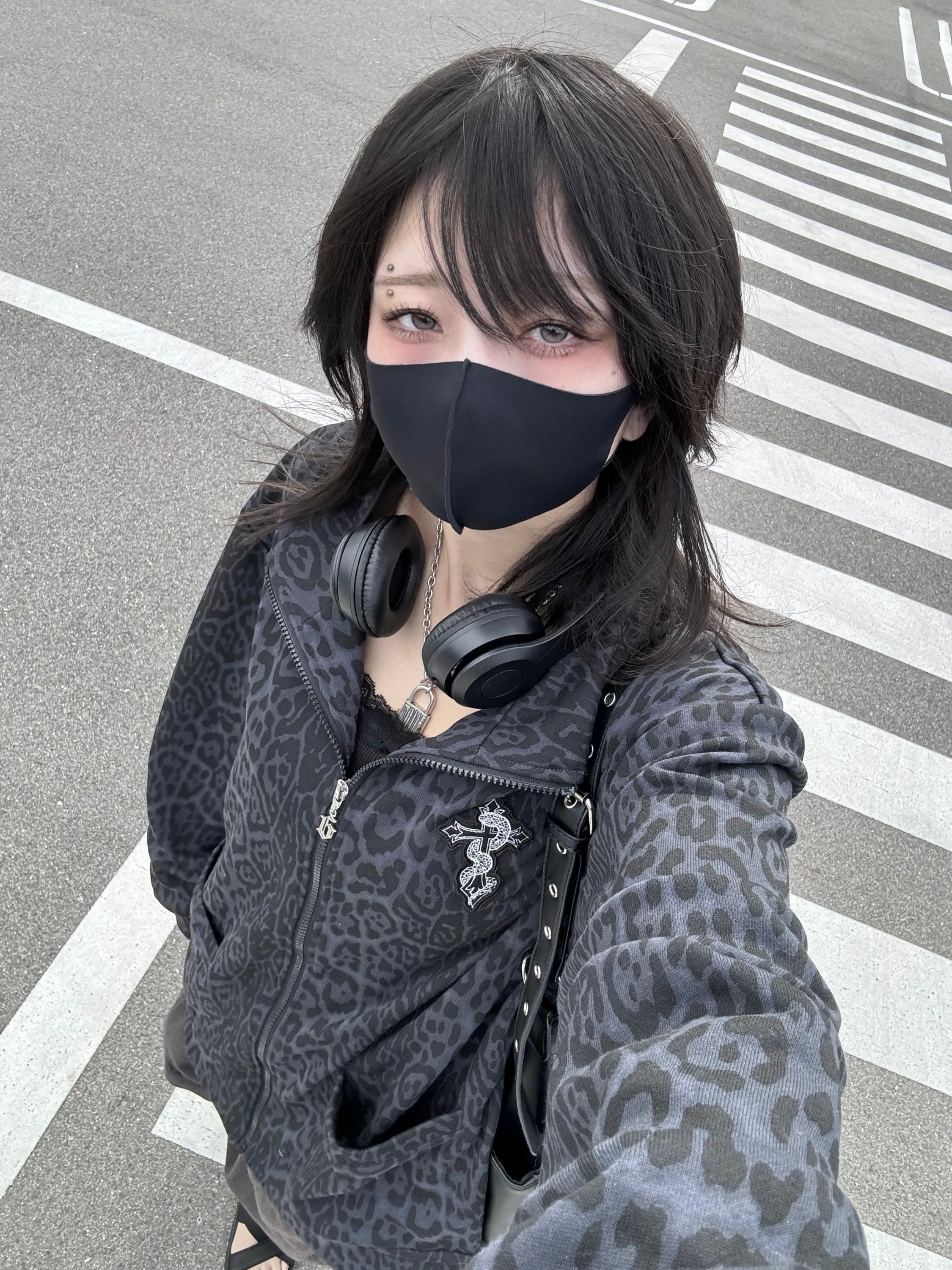 あまりないダークカラーのブルーグレーにレオパード柄の素材となっております。