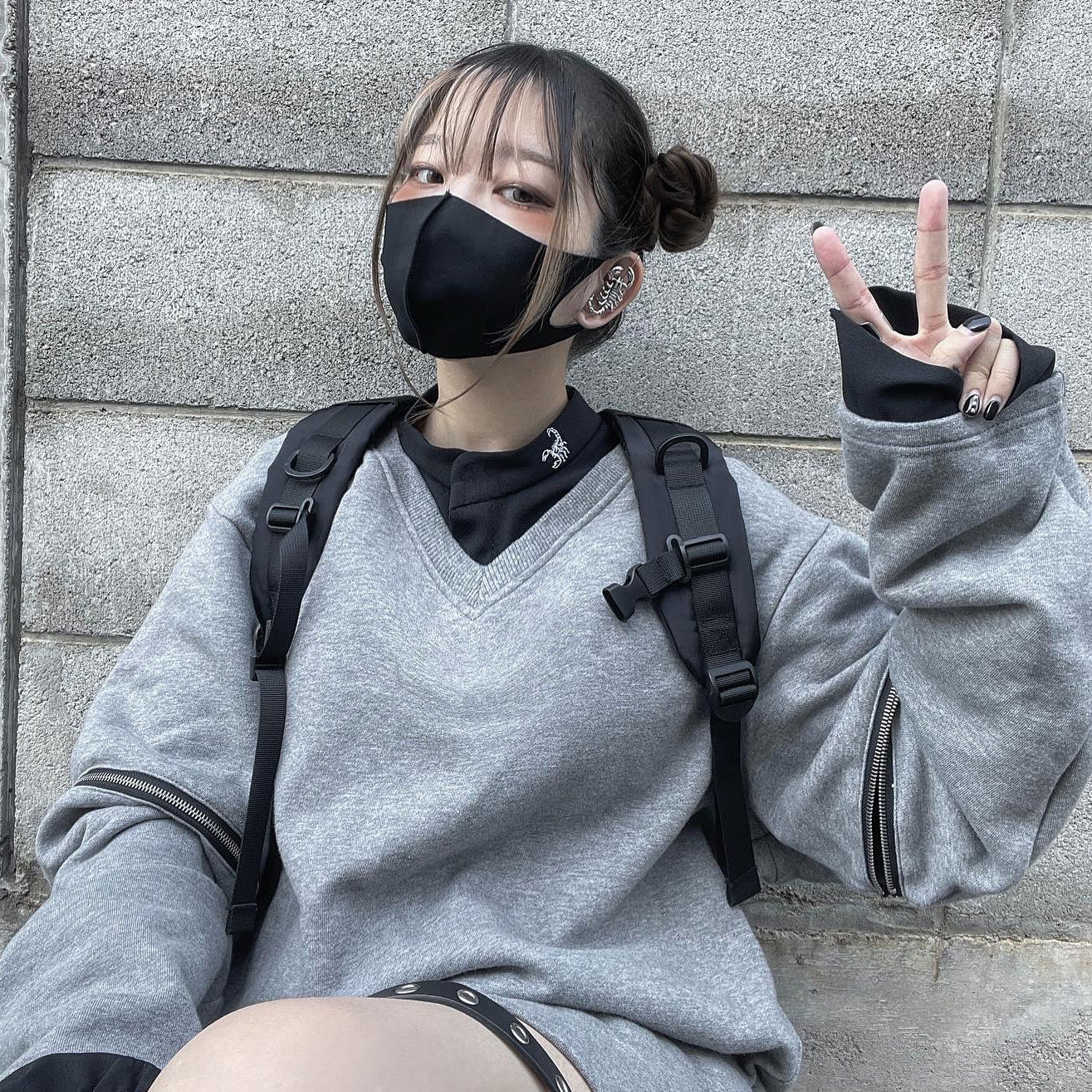 Vネックですのでインナーにタートルネックや、白、黒のシャツなどを